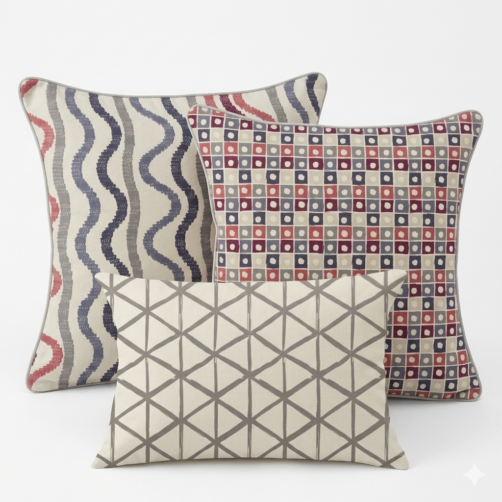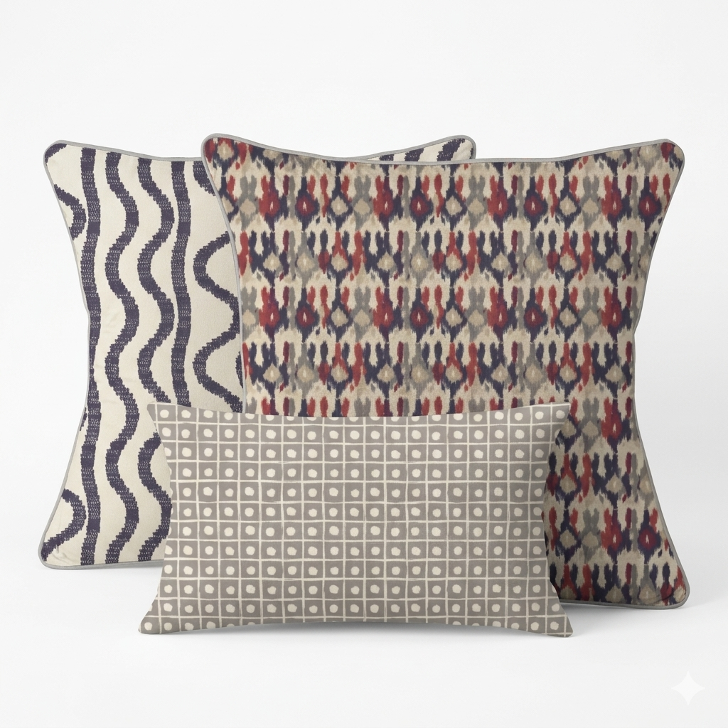 Our Designer Pillow sets eliminate the guesswork in styling by pairing coordinating square pillows with a contrasting lumbar for a designer-finished look. Each set blends a statement hero pattern with coordinated geometric, stripe, or patterned motif elements, creating depth, movement, and cohesion in any space. Many of the square pillows feature a complementary pattern on the reverse, providing even more flexibility in styling your space.