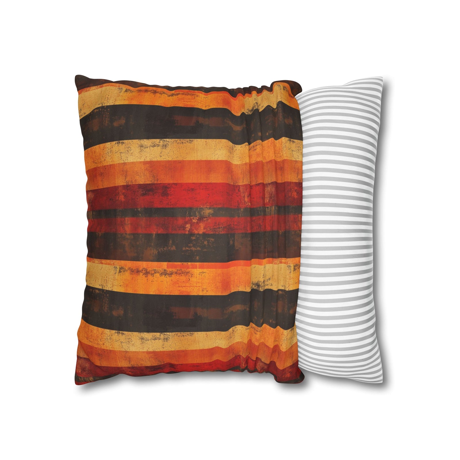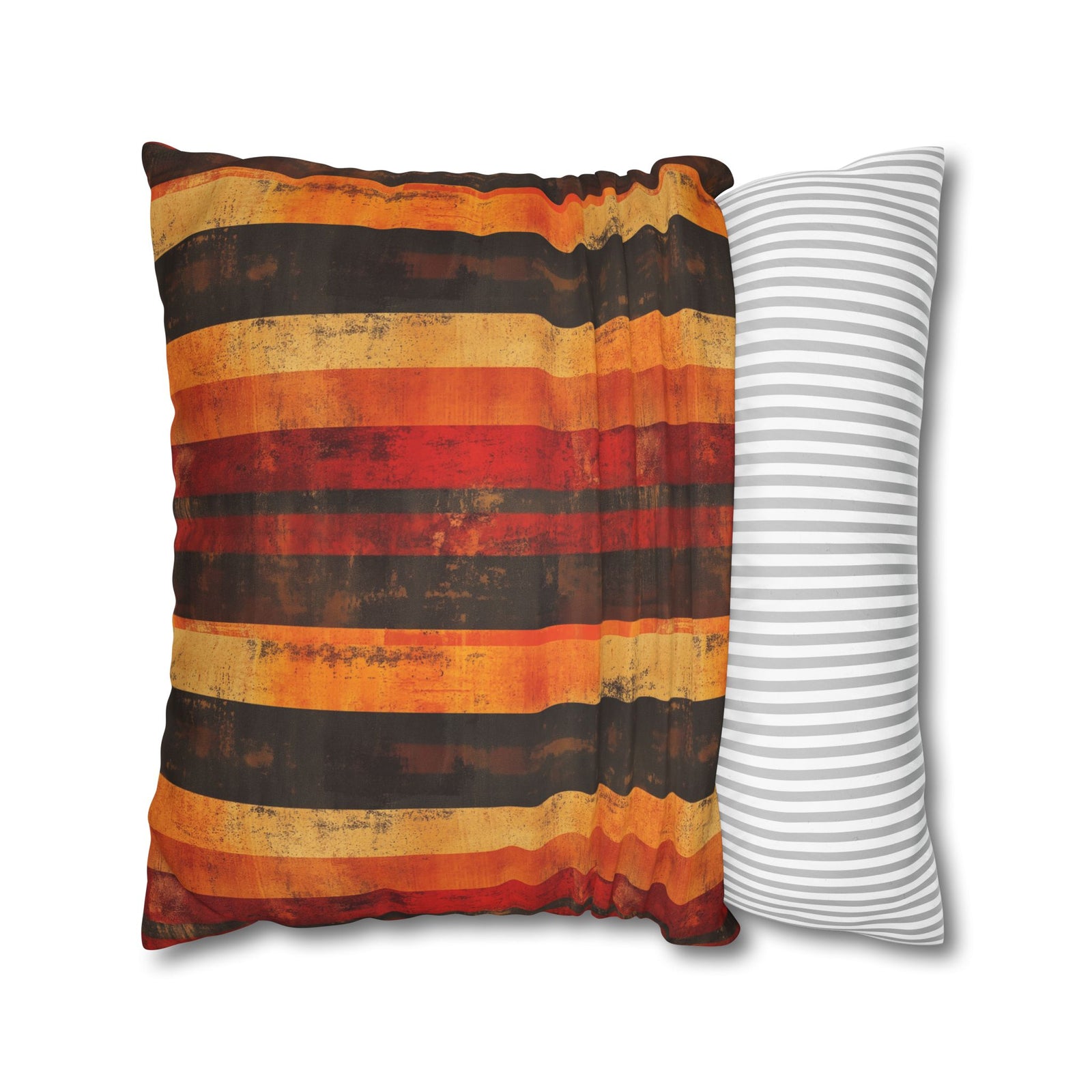 Microsuede Square Pillow Cover / Grunge Stripes in Fall Colors